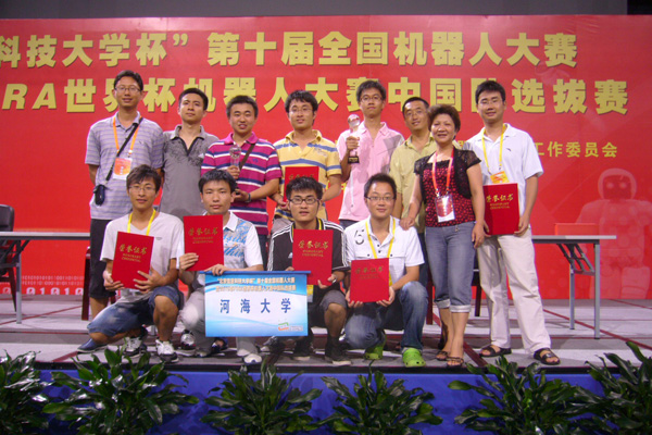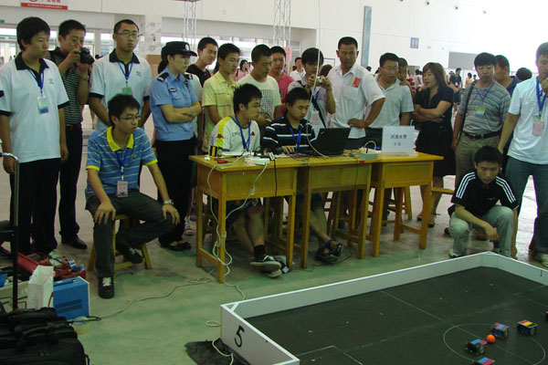 7月18—20日,中国自动化学会机器人竞赛工作委员会、RoboCup中国委员会、科技部高技术研究发展中心、内蒙古鄂尔多斯市人民政府共同主办的“2010中国机器人大赛暨RoboCup公开赛”在鄂尔多斯市举行。来自清华大学、北京大学、williamhill等全国171所大学的1021支代表队,近3000人参加了此次比赛。经过激烈的角逐,williamhill“e龙队”包揽了FIRA足球机器人小型组3vs3 、5vs5 、标准动作比赛三个项目的冠军。