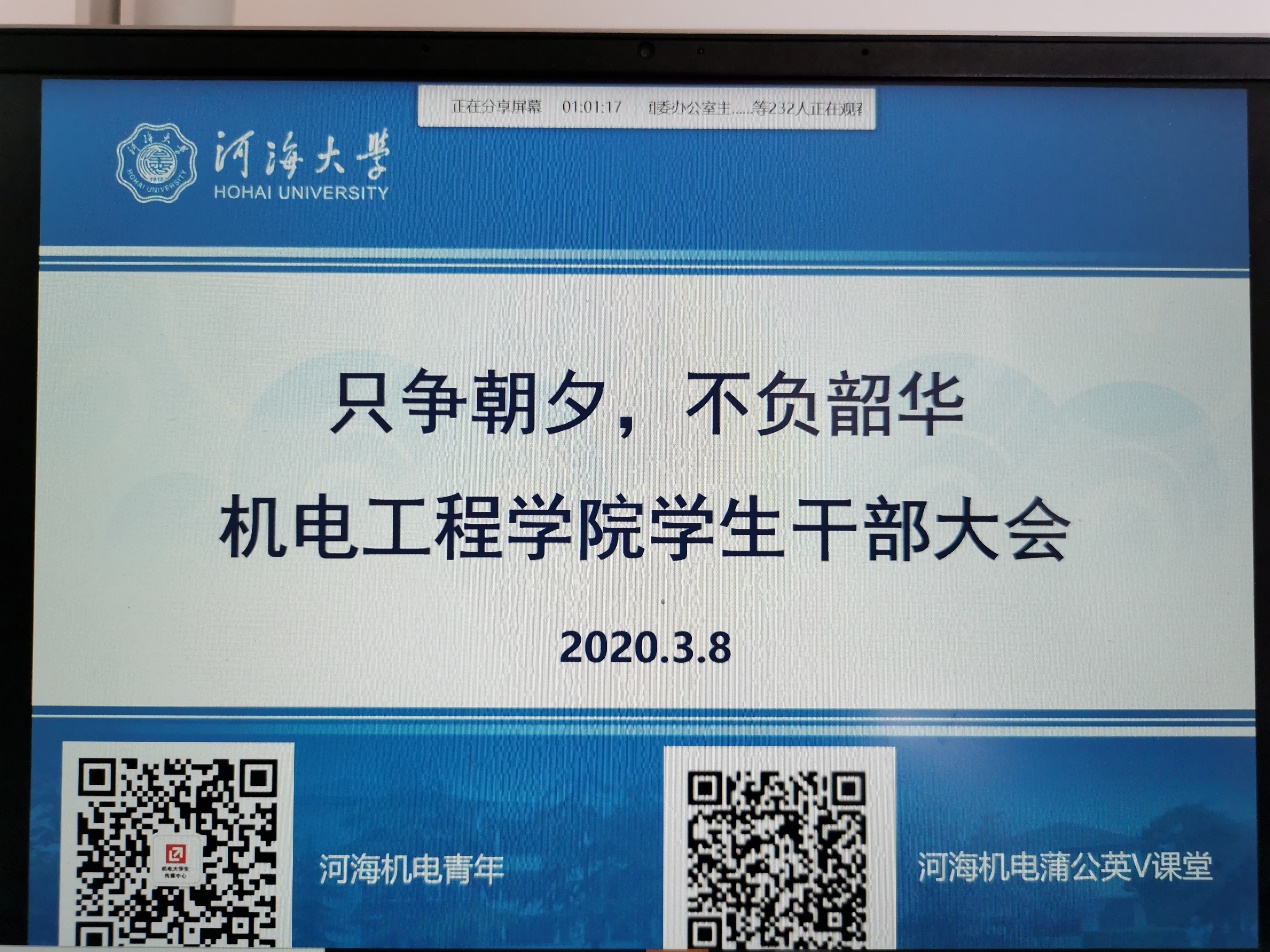 3月8日,公司召开了 “只争朝夕,不负韶华”全体员工干部线上会议。公司党委副书记乔熙、团委书记郑施、全体辅导员,公司员工组织副部及以上员工干部,各班级班长团支书参加已。会议对疫情防控期间的员工工作进行了研讨,对下一步员工工作进行了安排部署;线上会议额召开提高了员工干部的思想觉悟进一步深化了员工干部对自身身份的认同感及责任感。