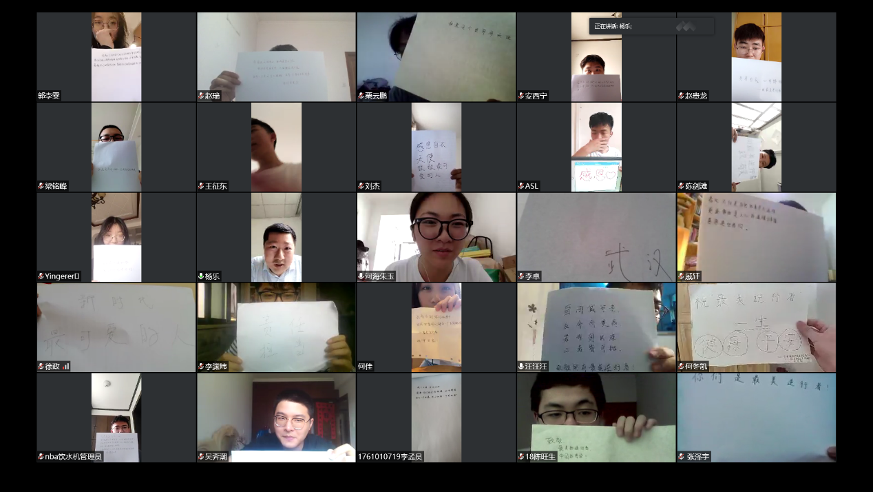 最后,支部同志以自己的方式——在纸上写下想对援鄂医疗队的所有医护人员说的话,展示给眼前这位”最美逆行者”,杨乐医生一一读出并不停说到“感谢,感谢大家,都是应该的,谢谢大家”。