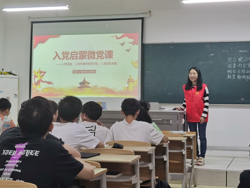 机械工程专业七八班本科生党支部党员张玉佩给新生讲授微党课