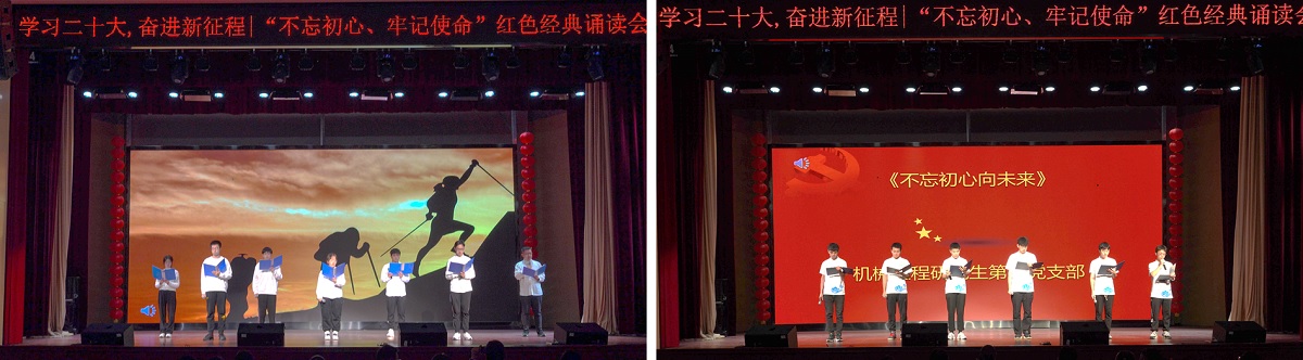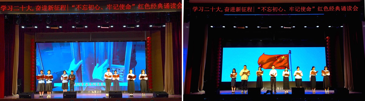本次红色经典诵读会中,师生们用丰富多彩的表达形式抒发对党的热爱,对新时代伟大征程的向往与祝福,表达为实现第二个百年奋斗目标而不懈奋斗的信念和决心。回眸历史、着眼当下、看向未来,广大青年学子纷纷表示在今后的学习生活中,将秉持始终如一的初心、坚守牢记在心的使命,不断提升理论素养,筑牢信念根基,立志做有理想、敢担当、能吃苦、肯奋斗的新时代好青年。