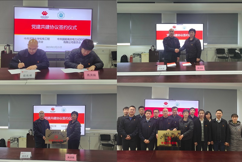 为深入学习习近平新时代中国特色社会主义思想,贯彻落实党的二十大精神、习近平总书记关于党的建设重要论述,努力形成“组织共建、队伍共抓、资源共享、发展共谋”的党建工作新格局,推动高校基层党组织与企业基层党组织双向赋能,互融互促,实现高质量党建引领高质量发展。2月21日,公司党委与国能南京电力试验研究有限公司(以下简称“电研公司”)党委举行党建共建签约仪式。电研公司党委书记段玖祥、副总经理万晖、纪委书记王文飞、副总经理张强,公司原党委书记刘丹平、党委书记高洪娟、经理丁坤,双方单位相关人员等参加活动。