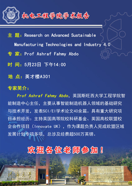 【机电大讲堂】Research on Advanced Sustainable Manufacturing Technologies and Industry 4.0