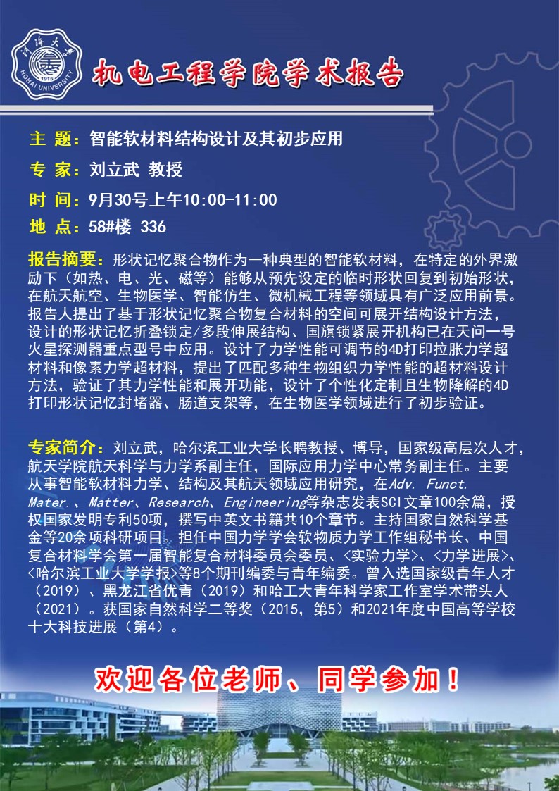 【机电大讲堂】智能软材料结构设计及其初步应用