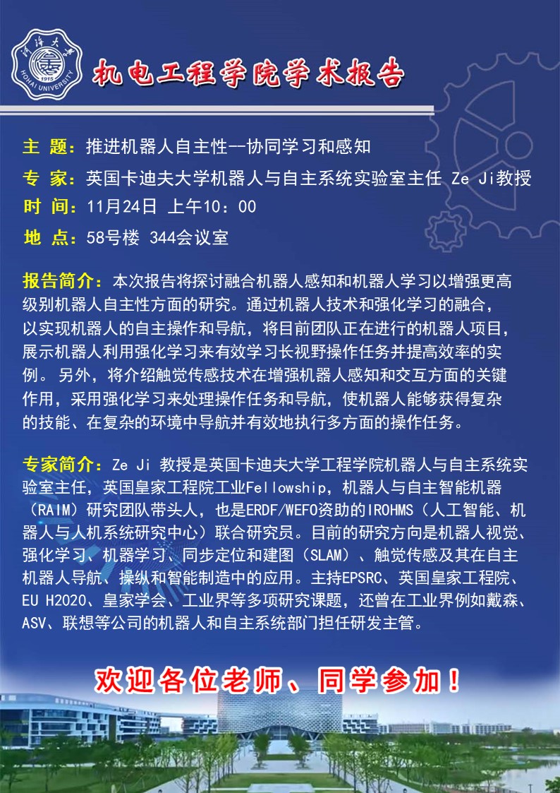 【机电大讲堂】推进机器人自主性--协同学习和感知