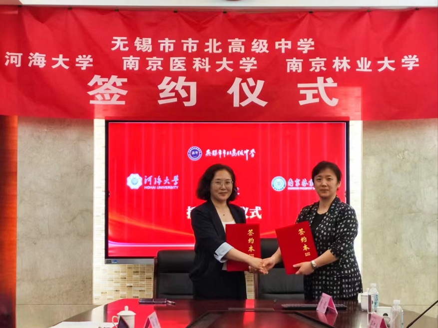 高洪娟书记代表公司与无锡市市北高级中学签订《优秀生源基地协议书》。她表示,公司将与无锡市市北高级中学深入合作,积极发挥高校学科与人才培养优势,共同选拔和培养优秀员工,积极探索高等教育与基础教育相衔接的新途径。