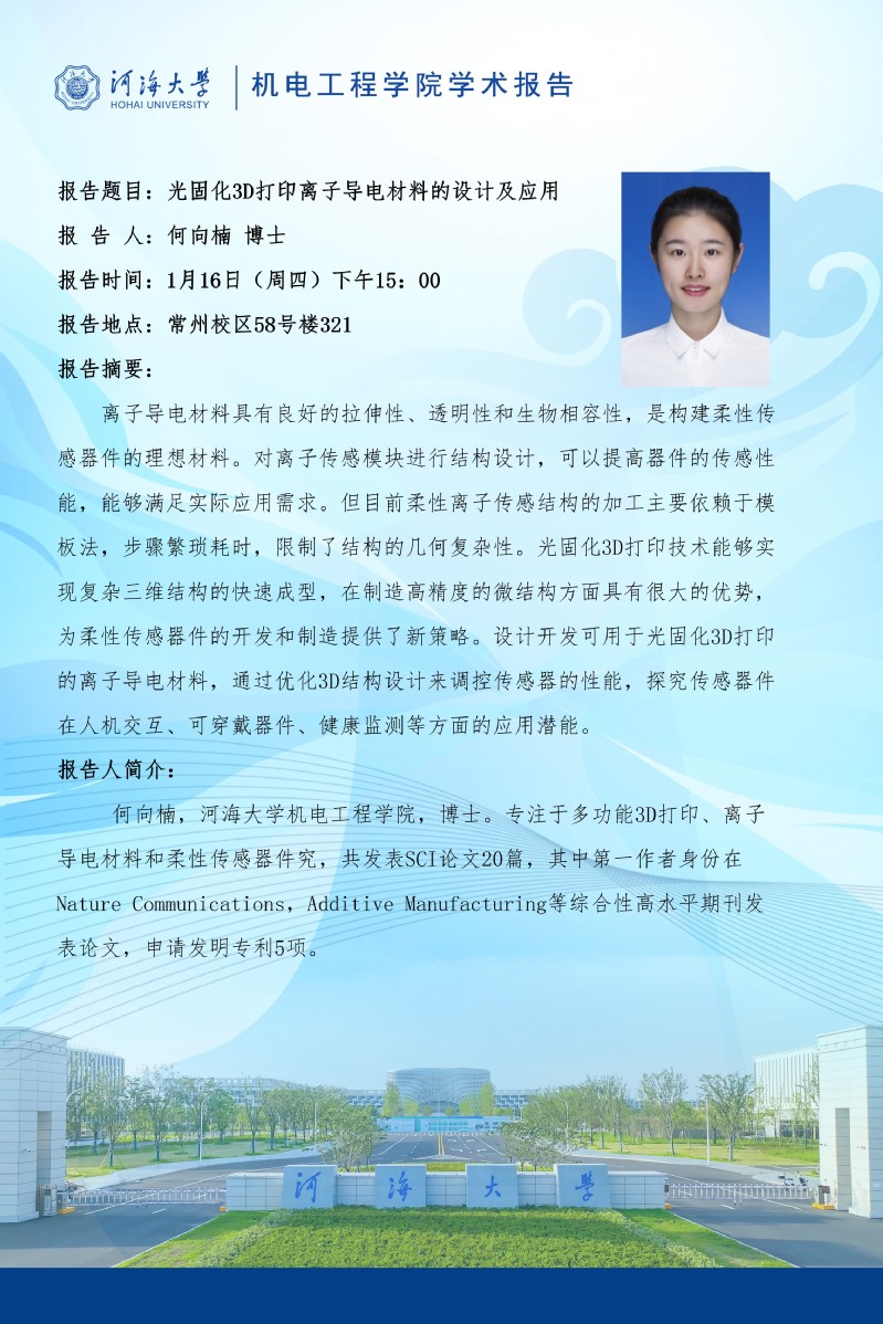 学术报告:光固化3D打印离子导电材料的设计及应用