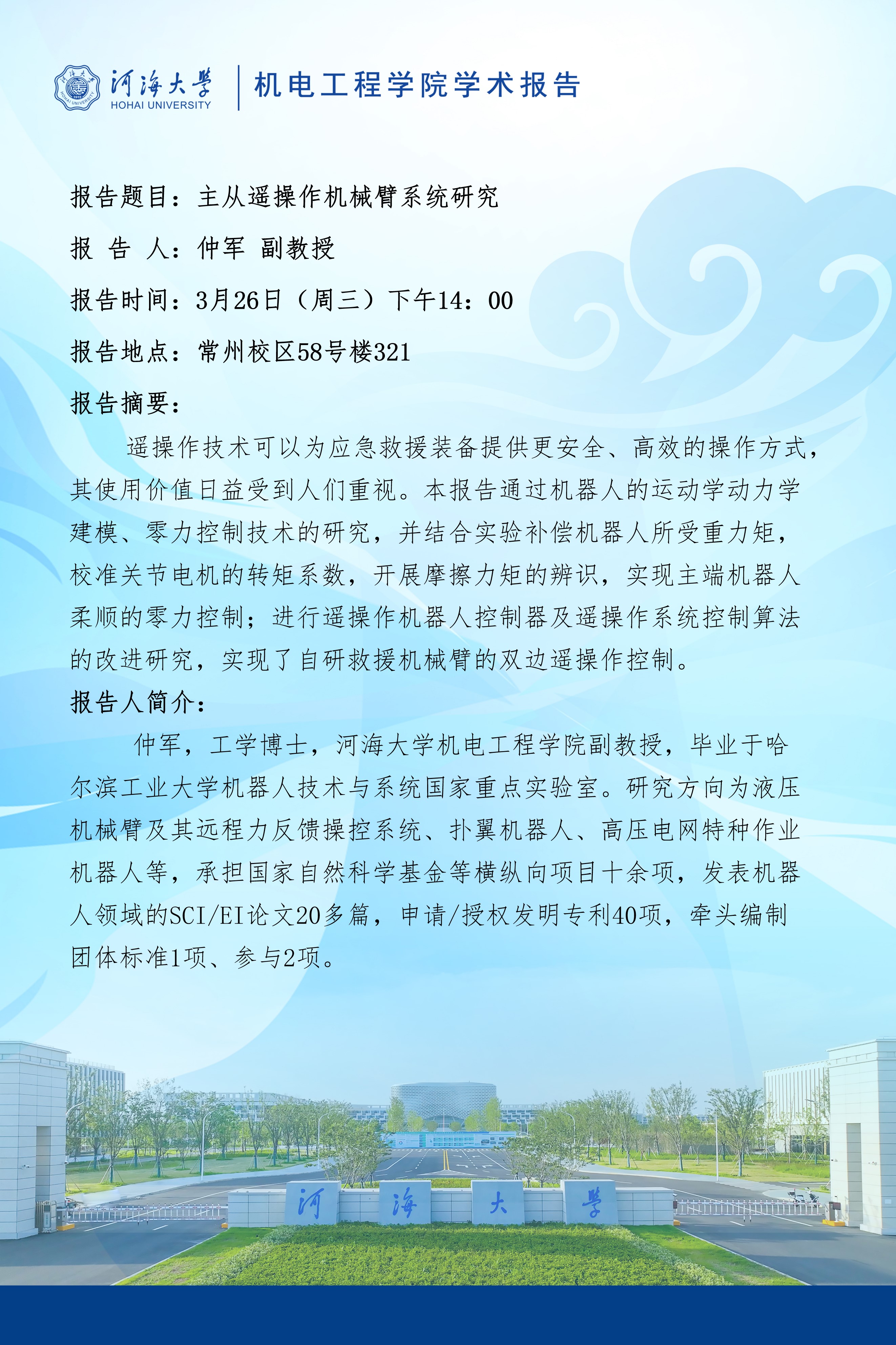 学术报告:主从遥操作机械臂系统研究