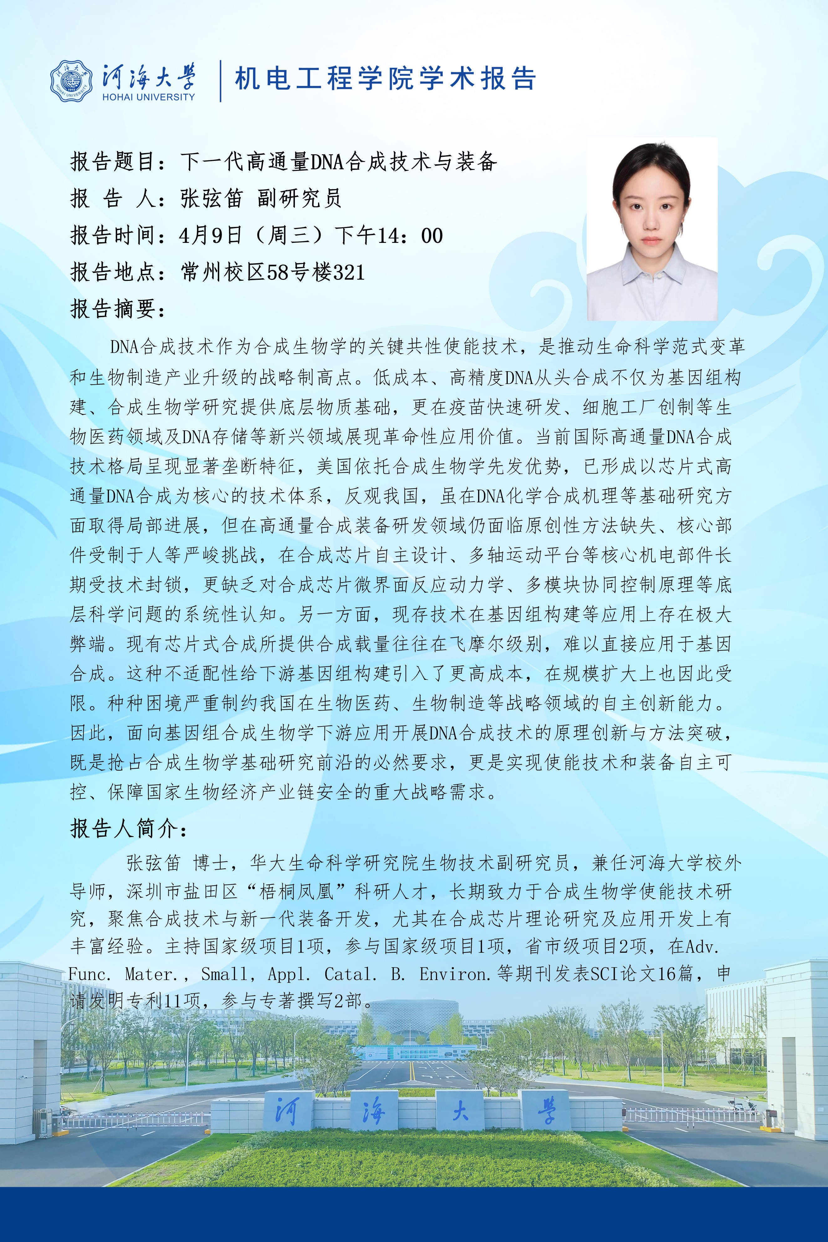 学术报告:下一代高通量DNA合成技术与装备