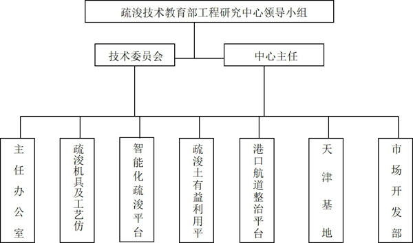 疏浚中心实行主任负责制,主任主持疏浚中心全面工作,并向公司提名推荐工程中心副主任和技术委员会成员人选。疏浚中心的技术委员会聘请了疏浚工程中心所在领域科学界、工程界和相关企业的院士、专家、企业家等共同组成了技术委员会。技术委员会作为工程中心的技术咨询机构,负责审议工程中心的发展战略、研究开发计划,评价工程设计与试验方案,提供技术经济咨询和市场信息,为中心的可持续健康快速发展,提供了重要的支撑作用。